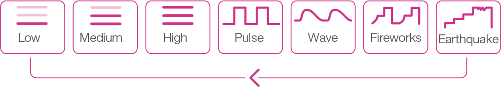 Titreşim şiddetini istediğiniz gibi özelleştirin ve daha sonra kullanmak üzere düğmelere kaydedin. Ayrıca, 10 adede kadar favori deseni programlayabilirsiniz!